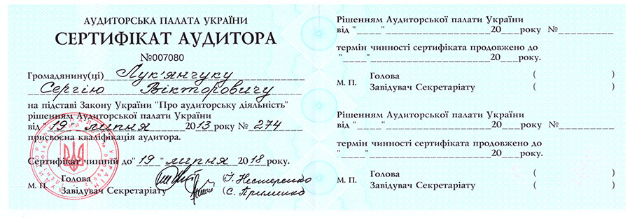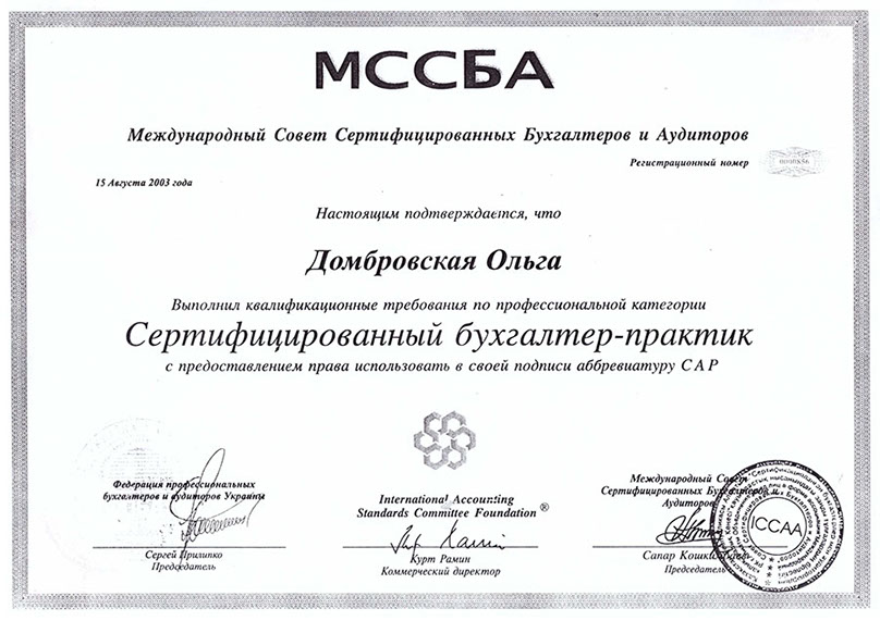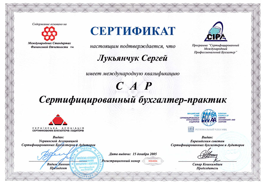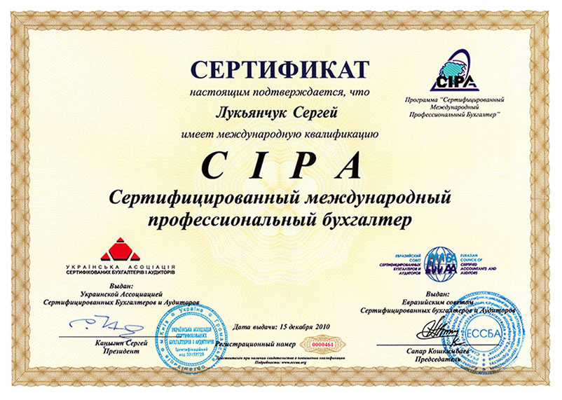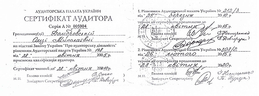У штаті фірми працюють сертифіковані аудитори, у тому числі з сертифікатами САР, CIPA.